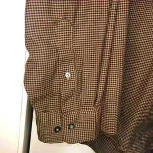 All American VTG Long Sleeve Brown/Gold, Purple Checked Button Up Shirt Size XL