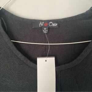 All At Once Women’s High Low Long Sleeve Round Neck Charcoal Gray Tunic Sweater