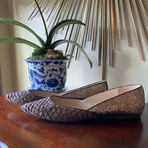 Embossed leather on the front with glitter on the back. The glitter is varying sizes of glitter, making it stand out and sparkle. See pic of close up of glitter.