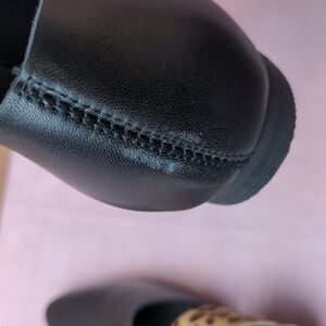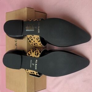 All Black D'Orsay Leopard Print Black Genuine Leather Pointed Toe Shoes Size 37