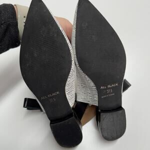 All Black Flats Womens 37.5 6.5 Black White Slingback Bow Tie Pointed Toe