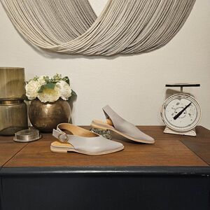 All Black Gray Pointed Sling Back Loafers Sz 37.5 (US 7). Excellent, like new condition, buttery soft to the touch.