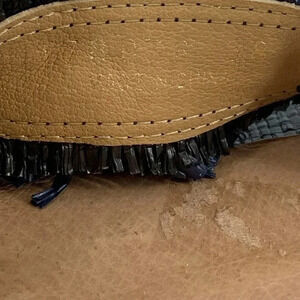 All Black Open-toe Raffia Fringe Pompom Block Heels Ankle Strap Sandals Size 7.5