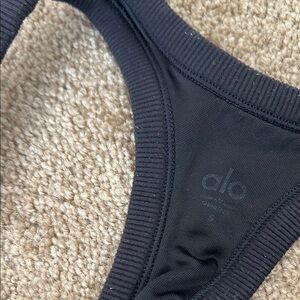 Black Alo racerback ribbed tank. In good condition, but has a little piling/ lint (pictured). Crisp rip tag. No padding in shelf bra. Size Small, full length tank.