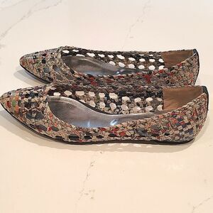 All Black Recycled Newspaper Woven Pointed Toe Ballet Flats Shoes Size 38.5