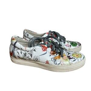 All Black Womens White Floral Lace Up Sneakers Size 38