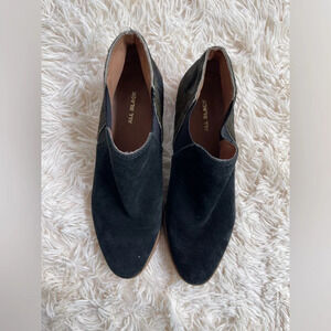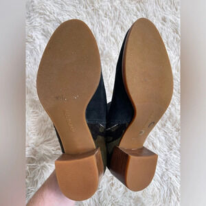 All Black ankle booties camo hair heel suede black round toe size 39 or 8