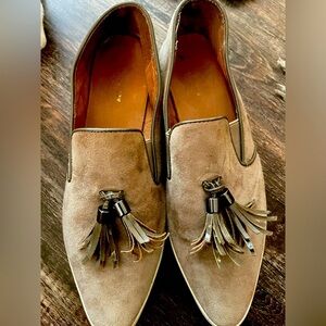 All Black tan suede slip on tassel loafer sneaker shoes taupe