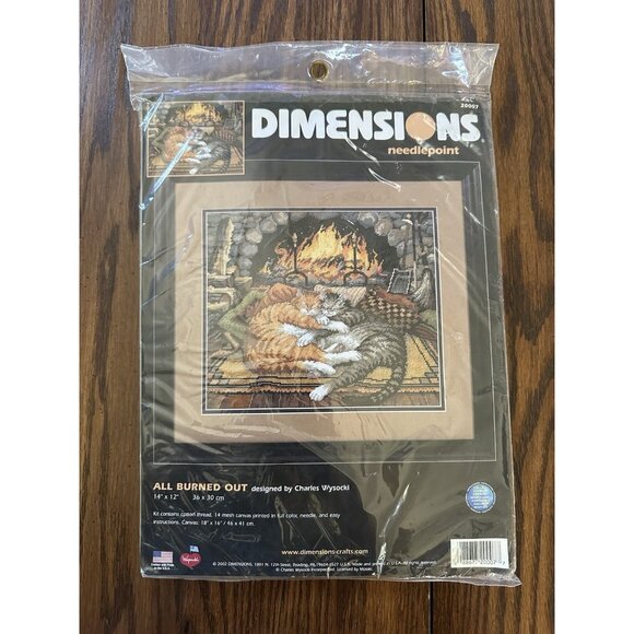 All Burned Out Dimensions Needlepoint Kit Charles Wysocki Cats Fireplace 20007