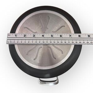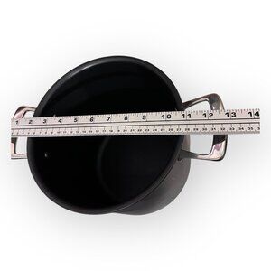 All-Clad Non-Stick 8-Qt Stock Pot with Hard Anodized Aluminum. NO LID - a lid is NOT included with this product listing. This pot is crafted from hard-anodized aluminum, offers a generous 8-quart capacity ideal for large batch cooking. Its non-stick surface ensures easy food release and hassle-free cleaning, while the robust construction guarantees durability and even heat distribution. • Hard-anodized aluminum construction • 8-quart capacity • Non-stick interior • No lid included • Sturdy handles Top to bottom = 9 inches Diameter = 8 inches