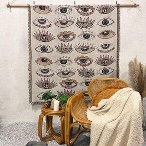 All Eyes On Me Boho Woven Jacquard Throw Blanket Tapestry Bohemian Decor 50×60IN
