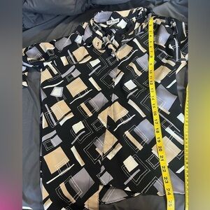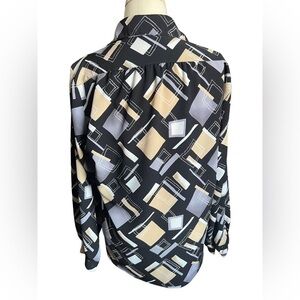 100% polyester vintage All Hours button up geometric pattern. See pics for approximate measurements