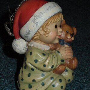 The Anri Sarah Kay Wood Carved "All I Want For Christmas" Ornament is a beautiful and unique piece that captures the essence of Christmas. Handmade in Italy in the late 20th century, this ornament features a young girl showing off her new Teddy Bear on Christmas morning! Packaged in it's original box, this vintage LIMITED EDITION piece from the First Christmas collection by ANRI is the perfect gift for anyone who appreciates artistic craftsmanship and vintage charm. Signed by the wood carver Ulrich Bernardi, making it that much more rare and valuable! Still in EXCELLENT condition with no chips, cracks, or repairs! Measures about 2-1/2" tall.