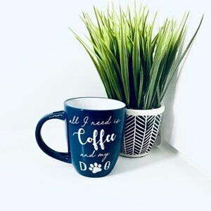 Adorable , All I need is Coffee and My Dog mug in navy blue and white.This is so cute &would look great in any dog love (home ) mug collection!🐶