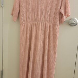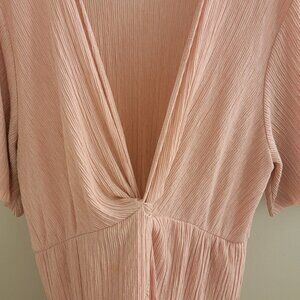 All In Favor Dolman Plissé Midi Dress w Center Twist Knot Deep V Neckline