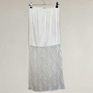 All In Favor Semi-sheer White Lace Midi Skirt- Size Small