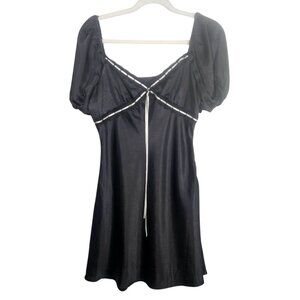 All In Favor Women Black M Mini Dress Milkmaid Puff Sleeve Coquette Whimsygoth