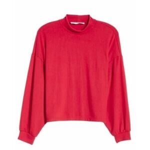 All In Favor Women's Mock Neck Pullover Sweatshirt Persian Red X-Large