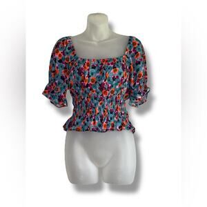 NWT All In Favor floral off the shoulder ruffled peasant sleeve lightly smocked crop top. Size Medium