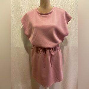 Chic mini dress with a relaxed fit. Features a tie waist for a flattering silhouette. Ideal for casual outings. Unique dye pattern at top left chest as shown. Size L