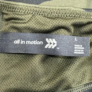 All In Motion Camouflage Medium Support Racerback T-Back Sports Bra in size L. Excellent like new condition, worn once and it was a bit too snug under the arms for me. Removable pads, moisture wicking. Please see photos for approximate measurements and details. Item may show a difference in color based upon photography and perception. Photos are part of the description, as everyone’s level of condition may vary. From smoke free and pet free home. All packages are shipped the same or next business day.