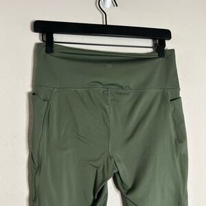 Fern Green High Rise Legging from All In Motion. Side drop in pockets. Secure zip pocket. Size M. See photos for measurements. Gently preowned condition with no tears, stains, or pilling.