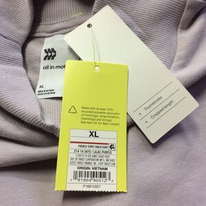 All In Motion French Terry Sweatshirt Sz XL Lilac Cropped Mock Neck Thumb Holes