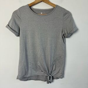 All In Motion Gray Soft Cuffed Short Sleeve Shirt Knot Bottom Girls Size Large