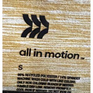 This All In Motion Harvest Yellow Long Sleeve Shirt is a unisex activewear piece in size small. It features a stretchable, striped pullover style, perfect for workouts or casual wear.