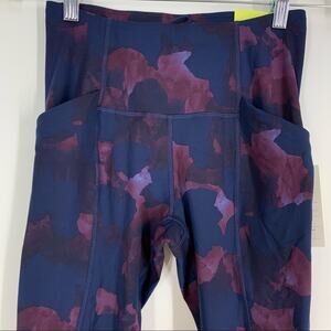 NWT. Size XS. Blue and purple sculpted mesh leggings. Stash pockets. Continuous loop drawstring. Moisture wicking. Quick dry. UPF 50+ Ventilating design. 12.5” waist flat lay 26” inseam