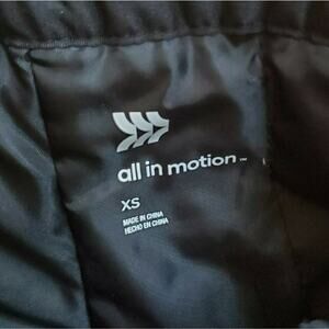All In Motion Kids Snow Pants, size XS, black, front zipper pockets, reinforced knee, water & wind resistant, adjustable waistband, has a tiny bit of wear along bottoms otherwise in like new condition.