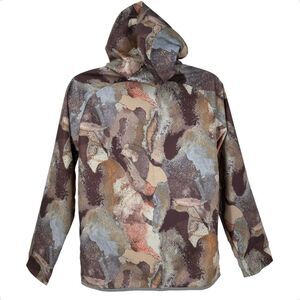 All In Motion Men’s Windbreaker Jacket Brown Stone Packable Hooded Sz Sm