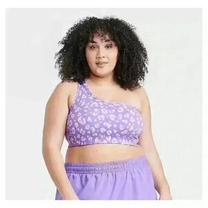 All In Motion Purple Leopard Print Asymmetrical Bra, XXL