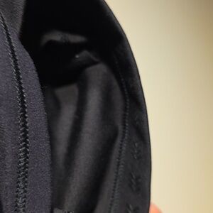 Stylish black racerback tank top with white trim. Perfect for casual wear or workouts.