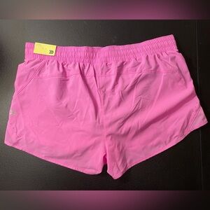 NWT All in Motion mid rise run shorts 3” in purple. Features continuous loop drawstring for adjustable fit, secure right side zipper pocket, waistband pocket, moisture wicking, quick dry, and reflective details.