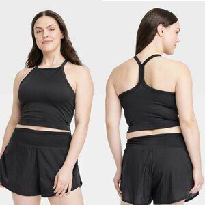 All In Motion Seamless Ribbed Cropped High Neck Tank Top Black Size Medium