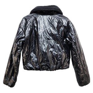 All In Motion Shiny Black Cropped Jacket Cozy line Sherpa Collar Size S