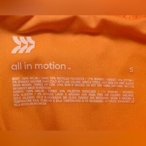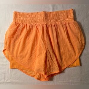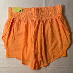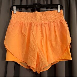 NWT All In Motion translucent tulip shorts in orange. Features water repellent, continuous-loop drawstring for adjustable fit and lined.