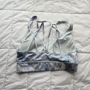Experience comfort and style with this blue marble sports bra. Perfect for workouts or casual wear.