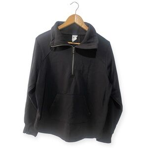 Stylish black quarter-zip pullover with a front pocket. Perfect for casual wear.