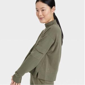 All In Motion Women’s French Terry Butter Wash Sweatshirt Army Green XL NWT