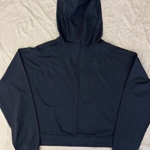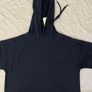 Solid-color pullover hoodie is made of a soft, stretchy extra-lightweight fleece fabric blend for a comfy and flexible fit that moves with you. Attached drawstring hood keeps your head covered, and the long sleeves provide an extra layer of warmth. Relaxed fit, at-hip length and banded edges complete the design with a sporty look.