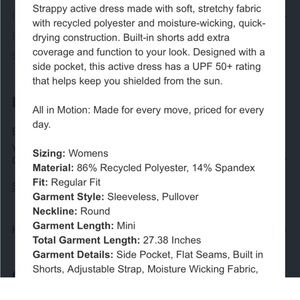 All In Motion Women's Flex Strappy Active Athletic Dress with Pockets new
