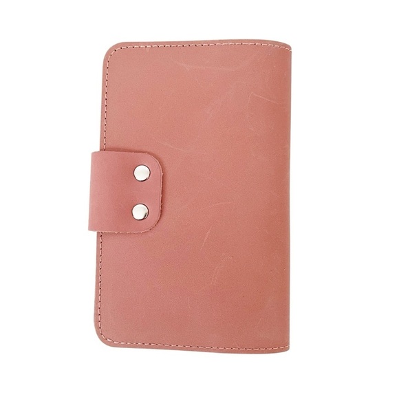 All In One Organizer Pink Leather Embossed Patricia Button 3 CC Slots Passport