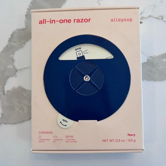 Soap, water sprayer, and 2 shaving blades. Everything you need to shave on the go