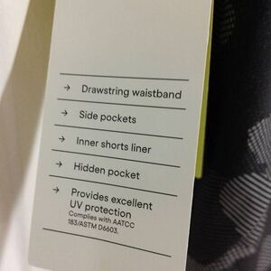NWT All In Motion Men's Swim Trunks Black and Grey Camo XL Side Pockets Inner Lining UV Protection Hidden Pocket too