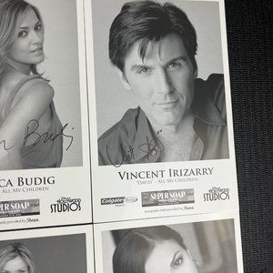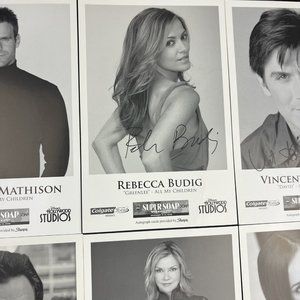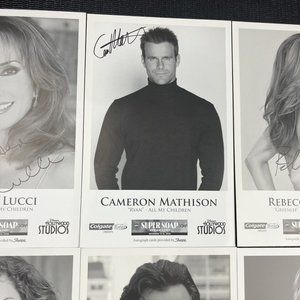 12 autographed headshots of various All My Children actors and actresses. Susan Lucci, Cameron Mathison, Rebecca Budig and more.