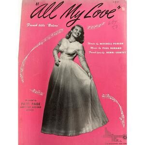 All My Love Sheet Music Mitchell Parish Paul Druand Henri Contet Patti Page