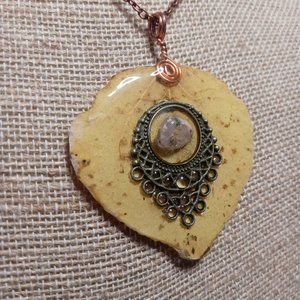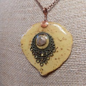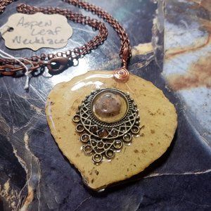 All Natural Real Aspen Leaf and Agate Stone Pendant Necklace