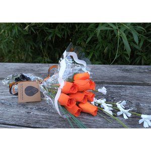 Each bouquet will Feature all Orange Bright Wooden Roses.